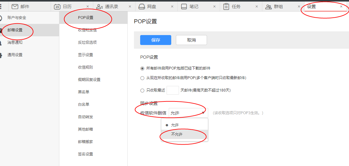 为防止其它的客户端设置问题导致邮件被删除,也可登录阿里邮箱网页进行设置。右上角-设置-基本设置-同步设置-勾选 禁止收信软件删信即可。