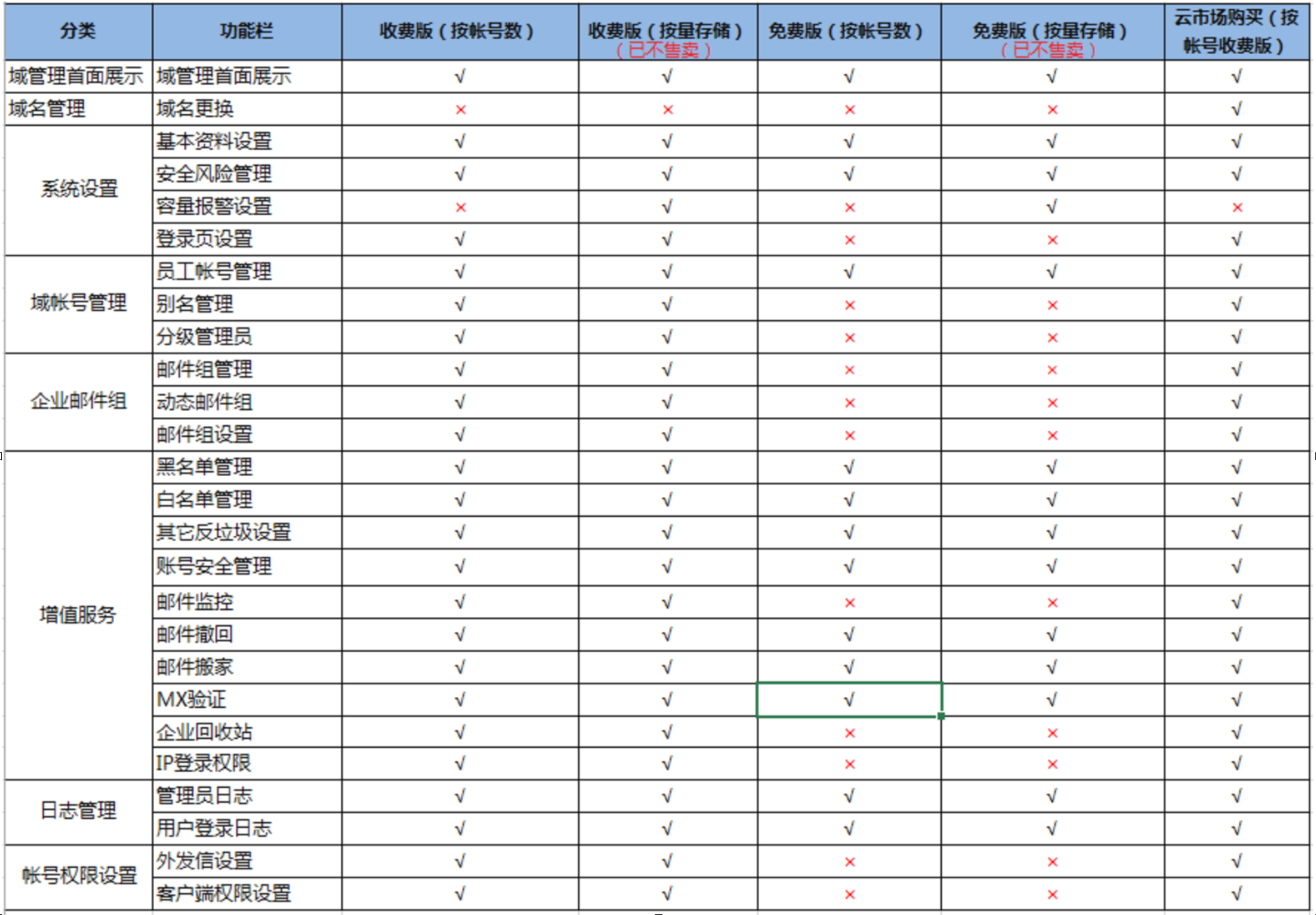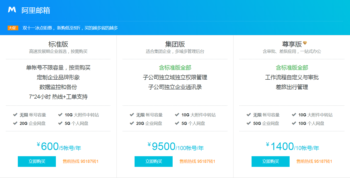 阿里邮箱有哪些不同的规格,有哪些功能上的区别?