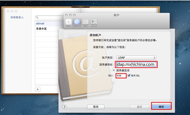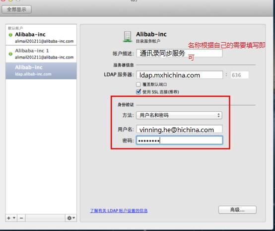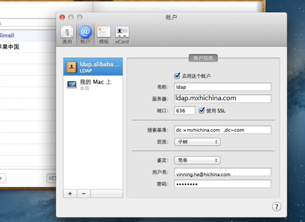 macmaill本地通讯录配置(因苹果官方系统bug,当前只支持macOS10.11以下版本,不包括10.11)