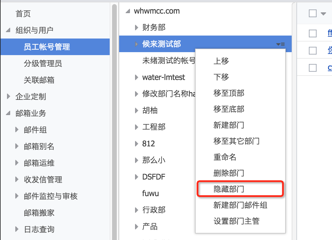 隐藏的话可能是比较重要的部门 ,不想让公司的其它员工直接查看到,所以进行了隐藏.这样普通员工登录邮箱的webmail时,就无法查看到.只有域管员(postmaster)才可以看到.